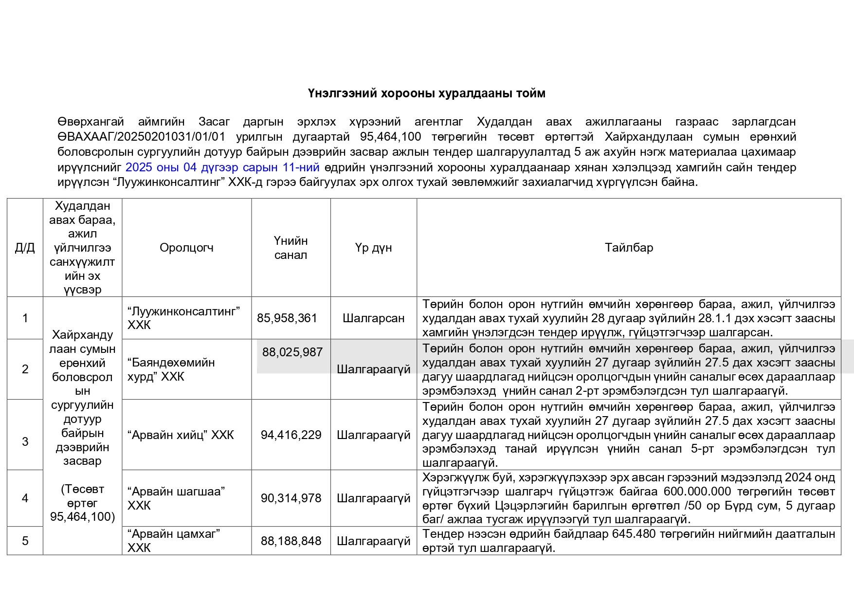 - Тендер шалгаруулалтын 4 дүгээр сарын мэдээ