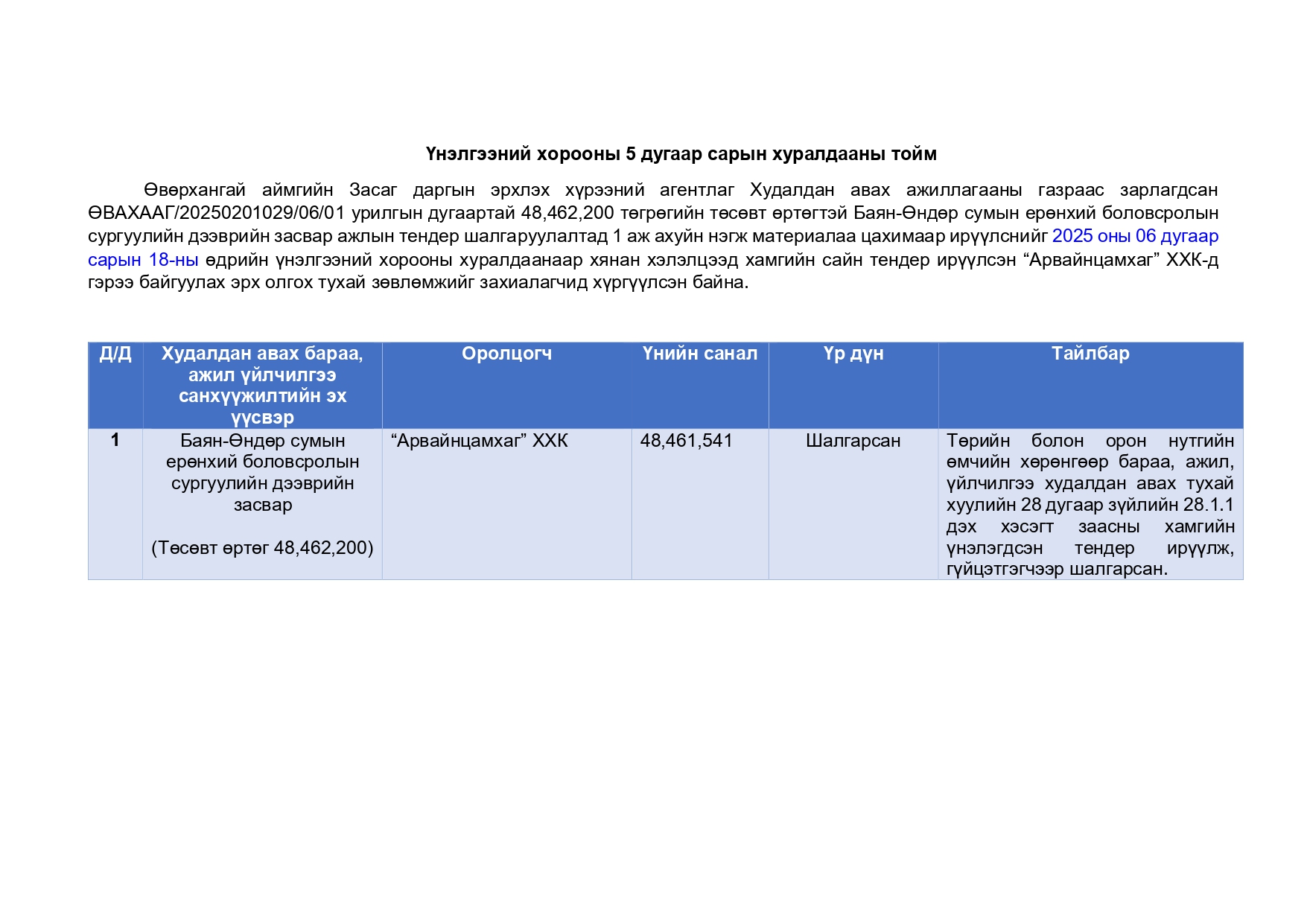 Үнэлгээний хорооны хуралдааны тойм